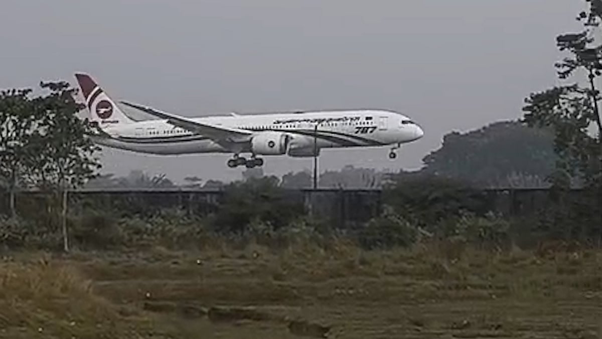 সিলেট বিমানবন্দরে তারেক রহমানকে বহনকারী বিমান