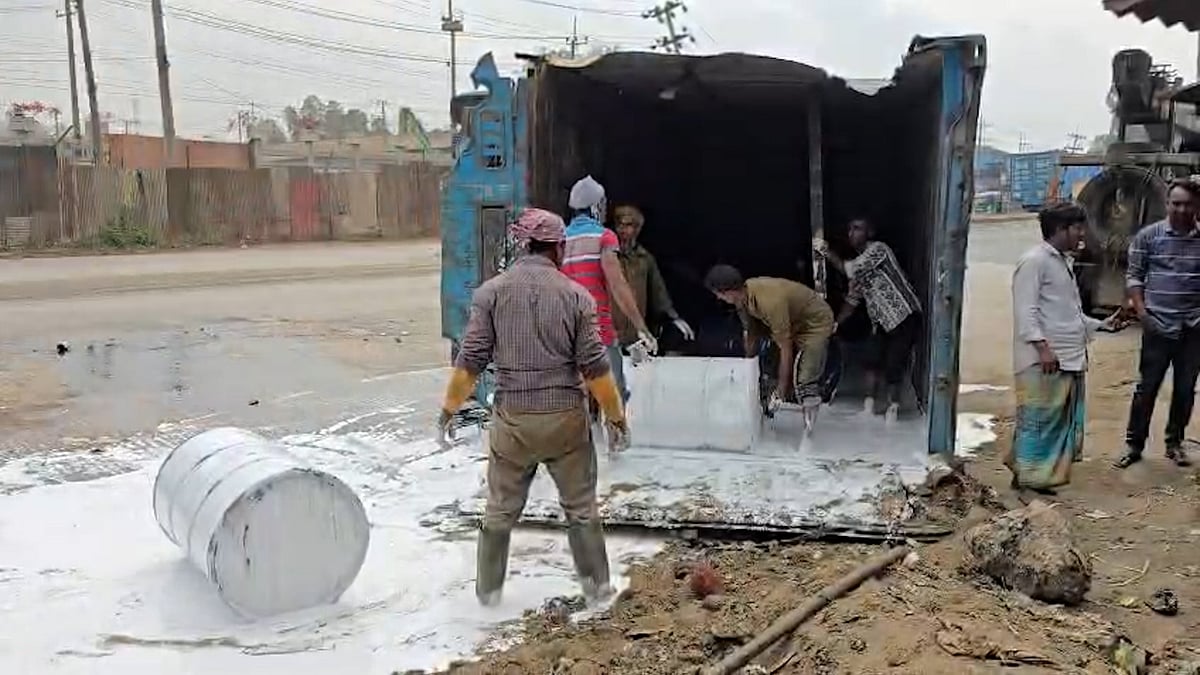 মহাসড়কে উল্টে গেল কাভার্ড ভ্যান, ছড়িয়ে পড়েছে গ্লু