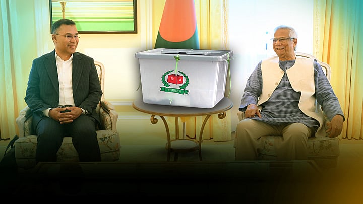 ১৩ জুন যুক্তরাজ্যের লন্ডনের ডরচেস্টার হোটেলে অন্তর্বর্তী সরকারের প্রধান উপদেষ্টা অধ্যাপক মুহাম্মদ ইউনূসের সঙ্গে বিএনপির ভারপ্রাপ্ত চেয়ারম্যান তারেক রহমানের বৈঠক হয়। তারেক রহমান প্রধান উপদেষ্টার কাছে আগামী বছরের রমজানের আগে নির্বাচন আয়োজনের জন্য প্রস্তাব করেন। প্রধান উপদেষ্টা বলেছেন, সব প্রস্তুতি সম্পন্ন করা গেলে ২০২৬ সালের রমজান শুরু হওয়ার আগের সপ্তাহেও নির্বাচন আয়োজন করা যেতে পারে। বিস্তারিত ভিডিও প্রতিবেদনে