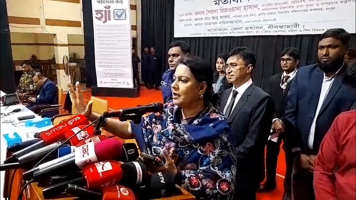 একটা গোষ্ঠী নিজেকে রাজা ভাবা শুরু করছে, সেখান থেকে উত্তরণ প্রয়োজন বলে মন্তব্য করেছেন তথ্য ও সম্প্রচার উপদেষ্টা সৈয়দা রিজওয়ানা হাসান। ১৮ জানুয়ারি বিকেলে নীলফামারী জেলা শিল্পকলা একাডেমি মিলনায়তনে গণভোটের প্রচার উপলক্ষে এক মতবিনিময় সভায় তিনি এ কথা বলেন। বিস্তারিত ভিডিও প্রতিবেদনে...