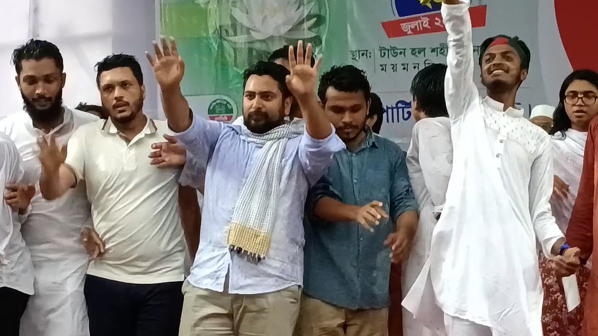 <p>ময়মনসিংহে ২৮ জুলাই জাতীয় নাগরিক পার্টির জুলাই পদযাত্রা ও পথসভা অনুষ্ঠিত হয়েছে। নগরের টাউন হলের মাঠে সমাবেশ অনুষ্ঠিত হয়। বিস্তারিত দেখুন ভিডিওতে</p>