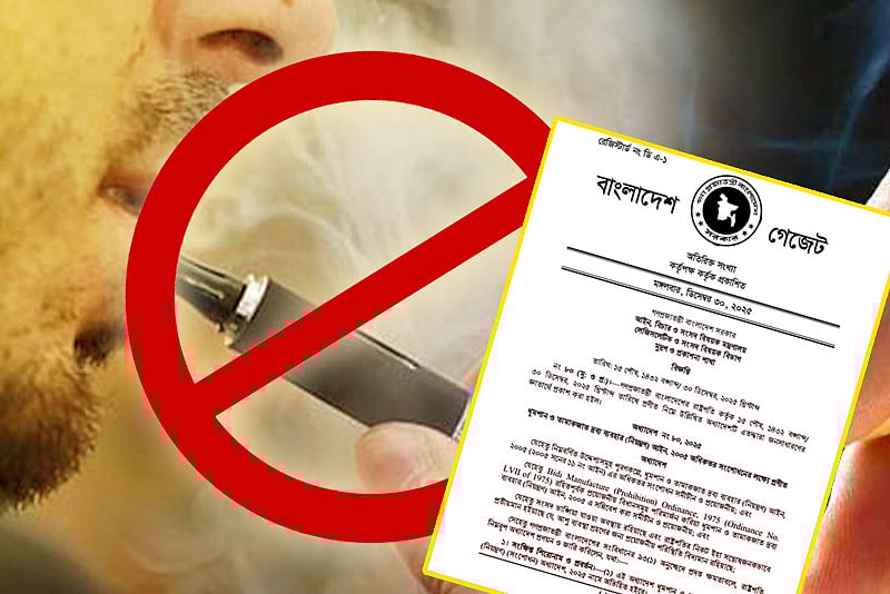 <p>ই–সিগারেট, ইলেকট্রনিক নিকোটিন ডেলিভারি সিস্টেম, হিটেড টোব্যাকো প্রোডাক্ট, নিকোটিন পাউচসহ সব ধরনের তামাকজাত পণ্য নিষিদ্ধের অধ্যাদেশ জারি করেছে সরকার। অধ্যাদেশে প্রকাশ্যে ধূমপান করলে ২ হাজার টাকা জরিমানার বিধান রাখা হয়েছে। বিস্তারিত ভিডিও প্রতিবেদনে…</p>