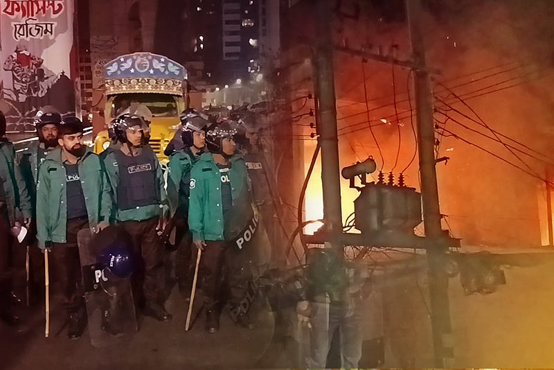 রাজধানীর কারওয়ান বাজারে প্রথম আলো ও ডেইলি স্টার কার্যালয়ে হামলার সময় পুলিশের ভূমিকা নিয়ে প্রশ্ন করেন এক সাংবাদিক। ডিএমপির অতিরিক্ত কমিশনার নজরুল ইসলাম বলেন, তখন ঘটনাস্থলে চার থেকে পাঁচ হাজার মানুষের উপস্থিতি ছিল। তুলনামূলক কম জনবল নিয়ে কঠোর অভিযানে গেলে পুলিশ ও সাধারণ মানুষের প্রাণহানির ঝুঁকি তৈরি হতো। সে কারণে পরিস্থিতি বিবেচনায় সর্বোচ্চ সংযম দেখানো হয়েছে। বিস্তারিত ভিডিও প্রতিবেদনে—