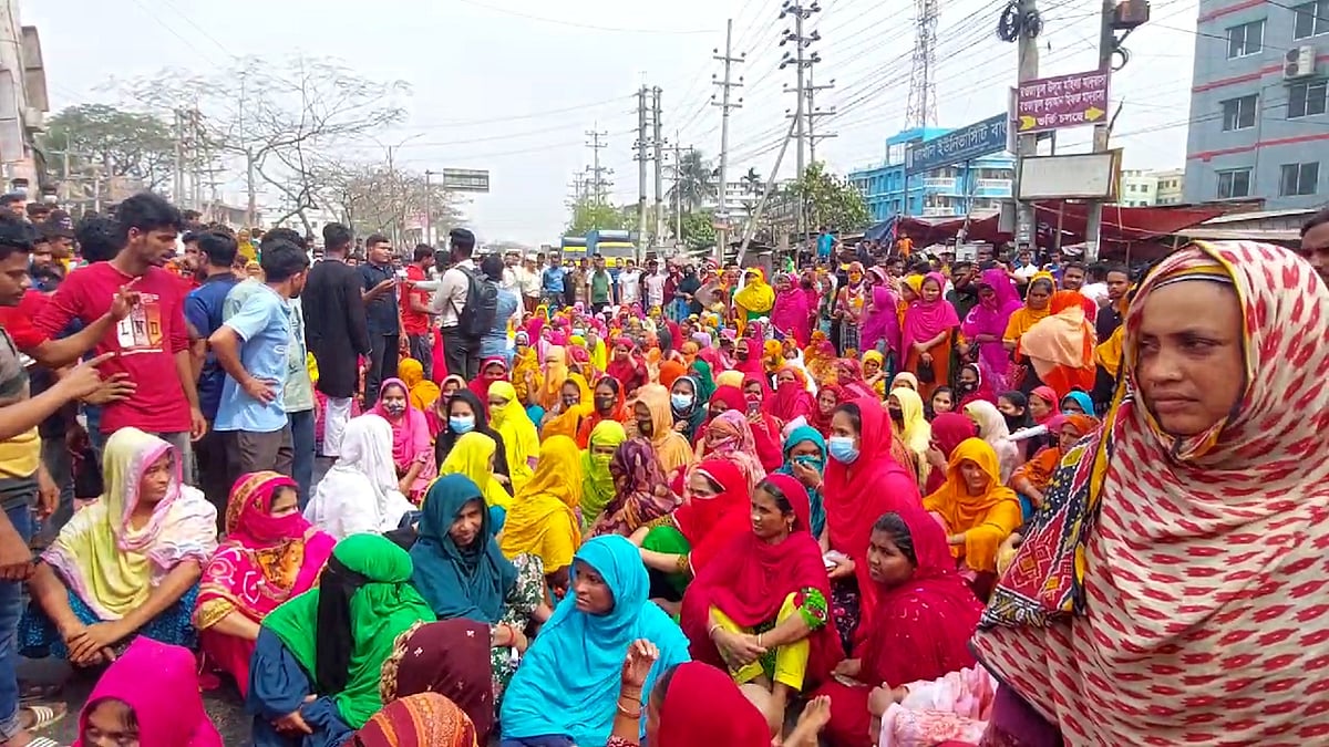 <p>গাজীপুরের সদরের তেলিপাড়া এলাকায় ঈদ বোনাসের দাবিতে মহাসড়ক অবরোধ করেছেন একটি সোয়েটার কারখানার শ্রমিকেরা। বিস্তারিত দেখুন ভিডিওতে...</p>