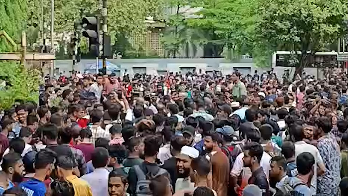 বৃষ্টি উপেক্ষা করে জগন্নাথের শিক্ষার্থীদের বিক্ষোভ-স্লোগান