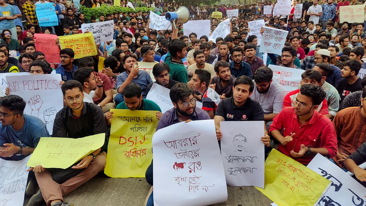 বাংলাদেশ প্রকৌশল বিশ্ববিদ্যালয় (বুয়েট) ক্যাম্পাসে ছাত্রলীগের গোপনে মিটিংয়ের প্রতিবাদে বিক্ষোভ করছে সাধারণ শিক্ষার্থীরা। শুক্রবার দুপুরে বুয়েটের শহীদ মিনার চত্বরে শিক্ষার্থীরা জড়ো হয়ে ক্যাম্পাসে ছাত্র রাজনীতি নিষিদ্ধ করার দাবিতে এই বিক্ষোভ সমাবেশ করা হয়