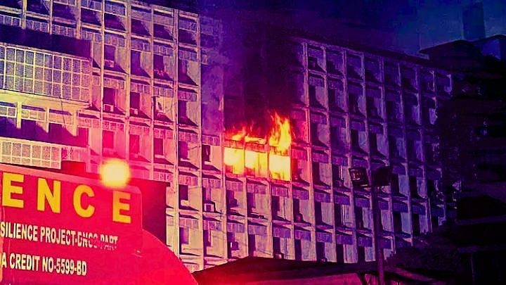 <p>প্রায় ১০ ঘণ্টা পর নিভেছে বাংলাদেশ সচিবালয়ে লাগা আগুন। ২৫ ডিসেম্বর দিবাগত রাত ১টা ৫০ মিনিটে সচিবালয়ের ৭ নম্বর ভবনে লাগা আগুন সম্পূর্ণ নিভেছে সকাল ১১টা ৪৫ মিনিটে। আগুনে পুরেছে ভবনের ৬ষ্ঠ থেকে ৮ম তলা। </p>