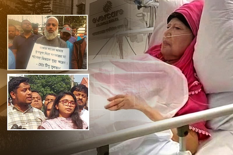 সাবেক প্রধানমন্ত্রী খালেদা জিয়ার শারীরিক অবস্থা সংকটাপন্ন। ফুসফুসের সংক্রমণ ও একাধিক রোগের কারণে চিকিৎসা জটিল হয়ে উঠেছে। এভারকেয়ার হাসপাতালের বাইরে নেতা-কর্মী ও সাধারণ মানুষ ভিড় করেছেন, বিদেশ নেওয়ার জন্য এয়ার অ্যাম্বুলেন্সের প্রস্তুতি চলছে বলে জানান বিএনপির ভাইস চেয়ারম্যান আহমেদ আযম খান। বিস্তারিত ভিডিও প্রতিবেদনে