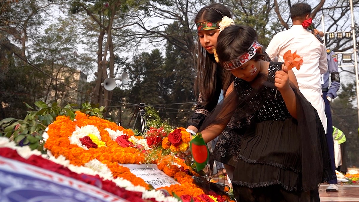 ফুলের ডালা, গাঁদা-গোলাপের মালা আর হাতে হাতে লেখা প্ল্যাকার্ড নিয়ে শহীদ মিনারে হাজারো মানুষ। বিস্তারিত দেখুন ভিডিওতে