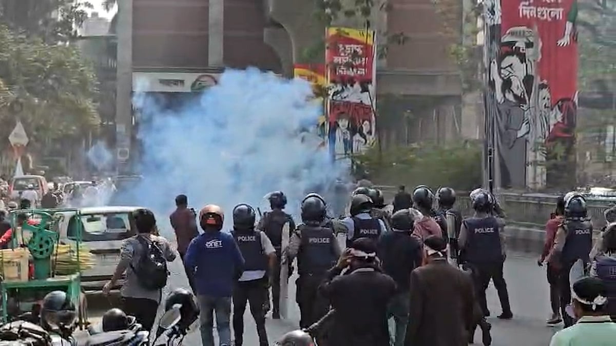 নবম পে স্কেল বাস্তবায়নের দাবিতে আন্দোলনকারী সরকারি কর্মচারীরা রাষ্ট্রীয় অতিথি ভবন যমুনার দিকে যাওয়ার সময় তাঁদের ওপর পুলিশ কাঁদানে গ্যাসের শেল, জলকামান ও সাউন্ড গ্রেনেড নিক্ষেপ করেছে। ৬ ফেব্রুয়ারি বেলা সোয়া ১১টার দিকে শাহবাগে হোটেল ইন্টারকন্টিনেন্টালের পাশের সড়কে পুলিশের ব্যারিকেড ভেঙে তাঁরা যমুনার প্রবেশমুখে অবস্থান নেন। এ সময় বিভিন্ন স্লোগান দেন তাঁরা। বিস্তারিত ভিডিও প্রতিবেদনে...