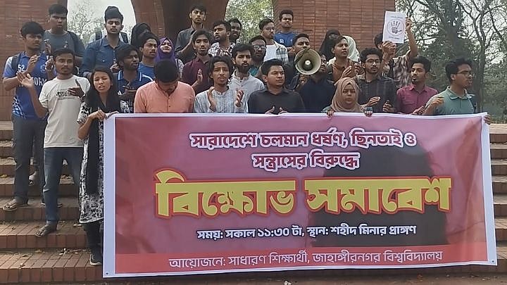 দেশে চলমান ধর্ষণ, ছিনতাই ও সন্ত্রাসের বিরুদ্ধে জাহাঙ্গীরনগরে বিক্ষোভ