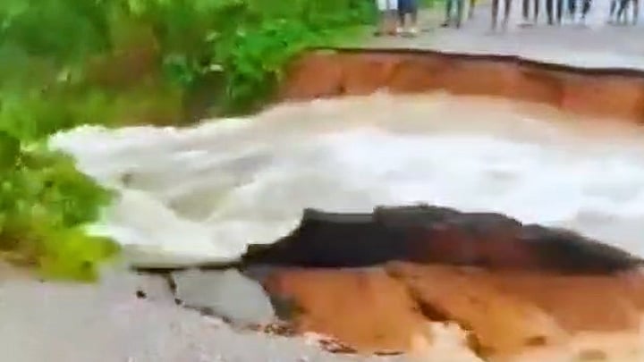 পাহাড়ি ঢলে মুহূর্তেই ভেঙে গেল পাকা সড়ক