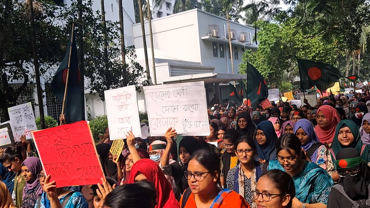 <p>ঢাকা বিশ্ববিদ্যালয়ে চলছে কোটাবিরোধী আন্দোলন। 'বাংলা ব্লকেড' কর্মসূচির অংশ হিসেবে বিক্ষোভ মিছিল করছেন শিক্ষার্থীরা৷ বিস্তারিত দেখুন ভিডিওতে...</p>
