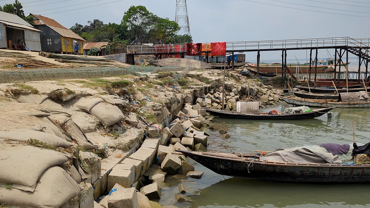 <p>পদ্মা সেতু প্রকল্প এলাকা রক্ষা বাঁধটির পুরো ২ কিলোমিটার ভাঙনের মুখে পড়েছে। বিস্তারিত দেখুন ভিডিওতে</p>