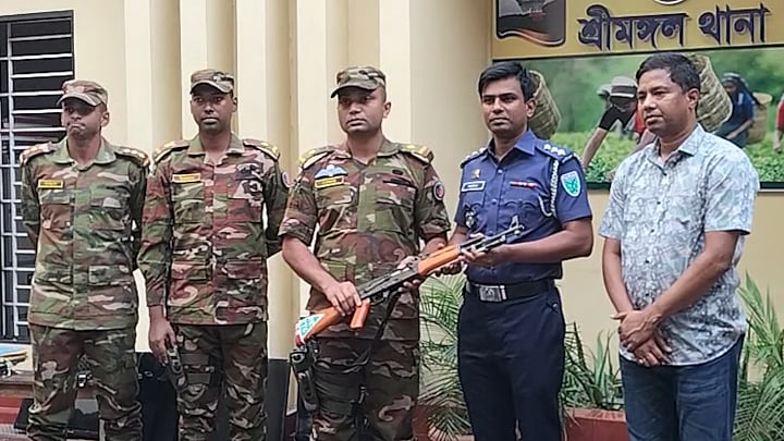 উদ্ধার হওয়া অস্ত্র শ্রীমঙ্গল থানায় ফিরিয়ে দিল সেনাবাহিনী