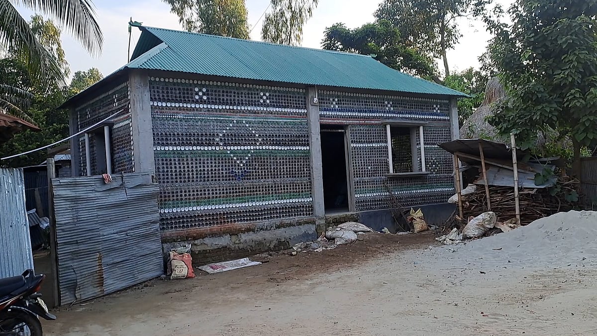 <p>ফেলে দেওয়া ২৬ হাজার প্লাস্টিকের বোতল সংগ্রহ করে আবদুল হাকিম বানিয়েছেন ঘর। আধা পাকা এই ঘরটি তিনি বানিয়েছেন ইউটিউব দেখে অনুপ্রাণিত হয়ে। বোতলবাড়ির বিস্তারিত দেখুন ভিডিওতে... </p>