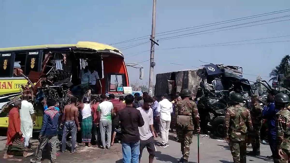 ময়মনসিংহ-হালুয়াঘাট সড়কে বাস-সেনাবাহিনীর ট্রাকের সংঘর্ষে নিহত ২