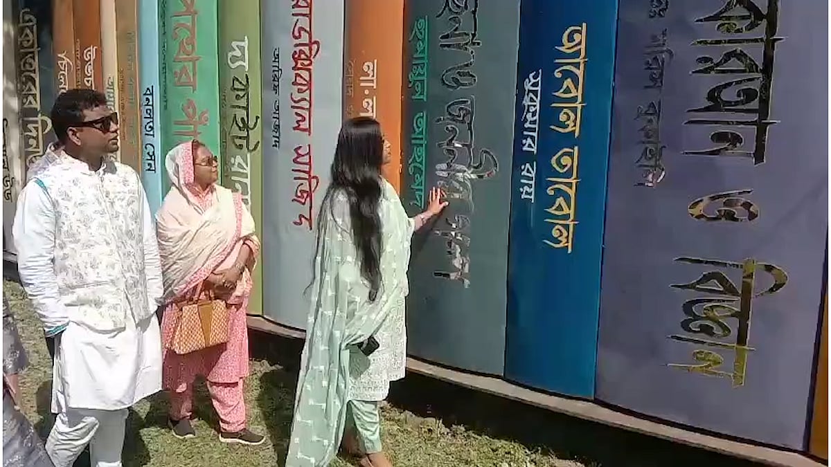 যে বাড়ির সামনে শত ফুট দীর্ঘ বইয়ের দেয়াল