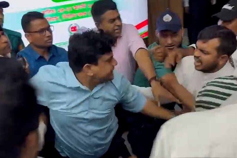 ব্রাহ্মণবাড়িয়ায় ‘ত্রয়োদশ সংসদ নির্বাচন উপলক্ষে নির্বাচনী এলাকাসমূহের পুনর্নির্ধারিত সীমানার বিষয়ে দাবি ও আপত্তি নিষ্পত্তিসংক্রান্ত শুনানি’ অনুষ্ঠানে হাতাহাতির ঘটনা ঘটেছে। যেখানে বিএনপি ও এনসিপির নেতা–কর্মীরা হাতাহাতিতে জড়িয়েছেন বলে জানা গেছে। বিস্তারিত দেখুন ভিডিওতে...