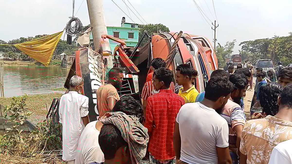 ফরিদপুরে নিয়ন্ত্রণ হারিয়ে পুকুরে চলে গেল বাস, নিহত ৭