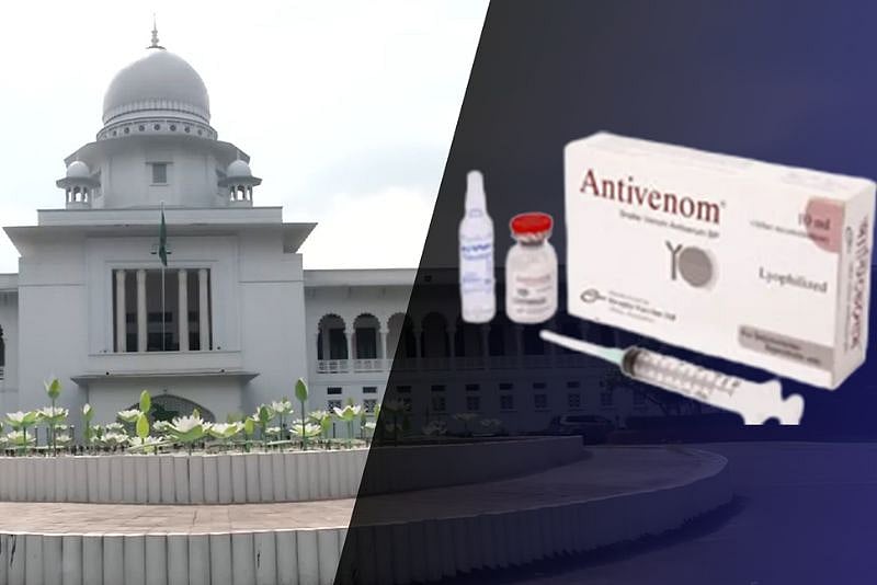 উপজেলা পর্যায়ে সরকারি স্বাস্থ্য কমপ্লেক্সে অবিলম্বে অ্যান্টিভেনম পাঠানো নিশ্চিত করতে নির্দেশ দিয়েছেন হাইকোর্ট। স্বাস্থ্য ও পরিবার কল্যাণসচিব, স্বাস্থ্য অধিদপ্তরের মহাপরিচালক এবং ঔষধ প্রশাসন অধিদপ্তরের মহাপরিচালকসহ বিবাদীদের প্রতি এ নির্দেশ দেওয়া হয়েছে। বিষাক্ত প্রাণীর (যেমন সাপ) বিষের প্রতিষেধক হিসেবে অ্যান্টিভেনম ব্যবহৃত হয়ে থাকে। বিস্তারিত ভিডিওতে...