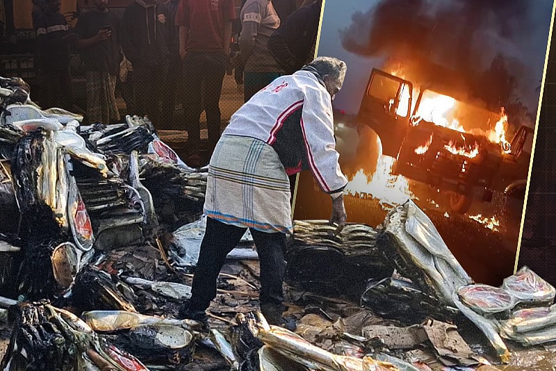চলন্ত কাভার্ড ভ্যানে আগুন, পুড়ে গেল কয়েক লাখ টাকার পণ্য