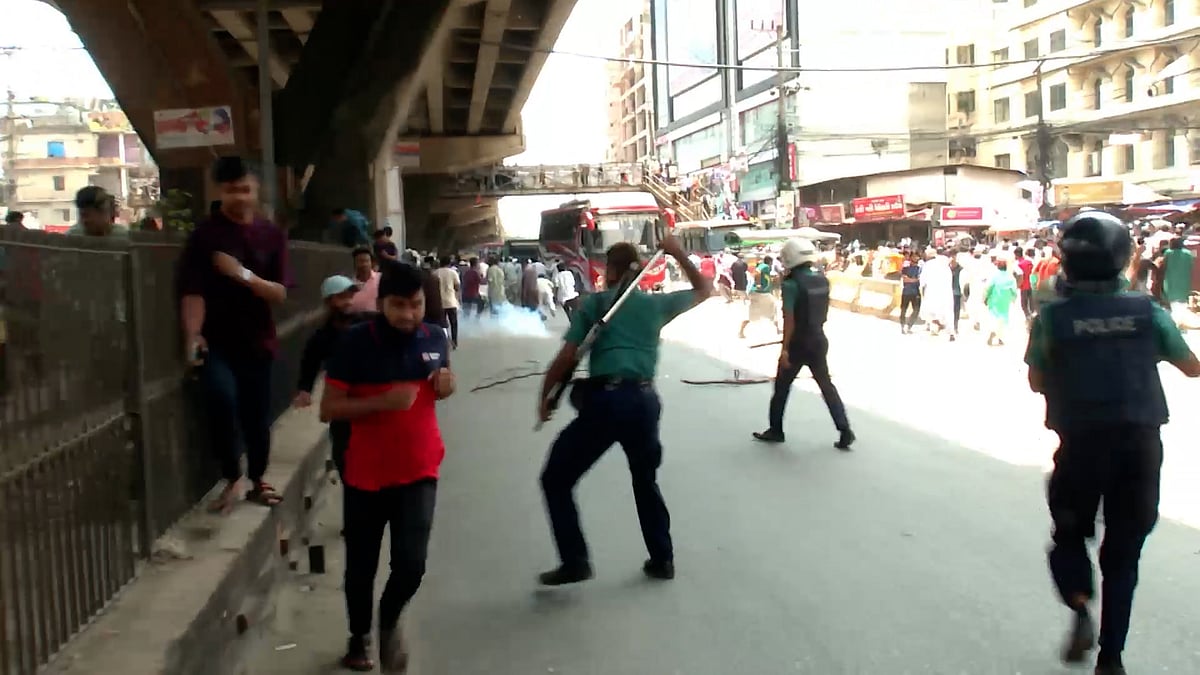 পুলিশ সাউন্ড গ্রেনেড ও কাঁদানে গ্যাসের শেল ছুড়ে পরিস্থিতি নিয়ন্ত্রণে আনেন
