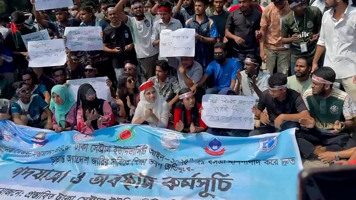 ঢাকার সাতটি সরকারি কলেজ একীভূত করে প্রস্তাবিত ‘ঢাকা সেন্ট্রাল ইউনিভার্সিটি’ নামে অধ্যাদেশ জারির দাবিতে বিক্ষোভ করছেন শিক্ষার্থীরা। আজ সোমবার সকাল থেকে রাজধানীর শিক্ষা ভবনসংলগ্ন রাস্তায় অবস্থান নিয়ে সাত কলেজের শিক্ষার্থীরা বিক্ষোভ করেন। এদিকে শিক্ষার্থীদের কর্মসূচি ঘিরে সচিবালয় অভিমুখে ব্যারিকেড দিয়ে রাস্তা বন্ধ করে দেয় পুলিশ। এ কারণে ওই পথ দিয়ে যান চলাচল বন্ধ রয়েছে।