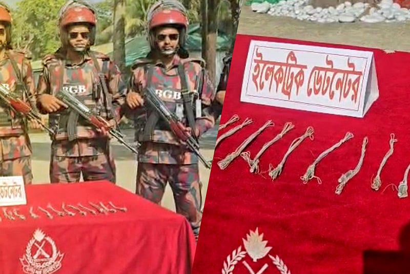 <p>সুনামগঞ্জের তাহিরপুর সীমান্তে গাছের খড়কুটোর নিচ থেকে ২৪টি ডেটোনেটর বিস্ফোরক উদ্ধার করেছে বিজিবি। বিস্তারিত ভিডিও প্রতিবেদনে—</p>