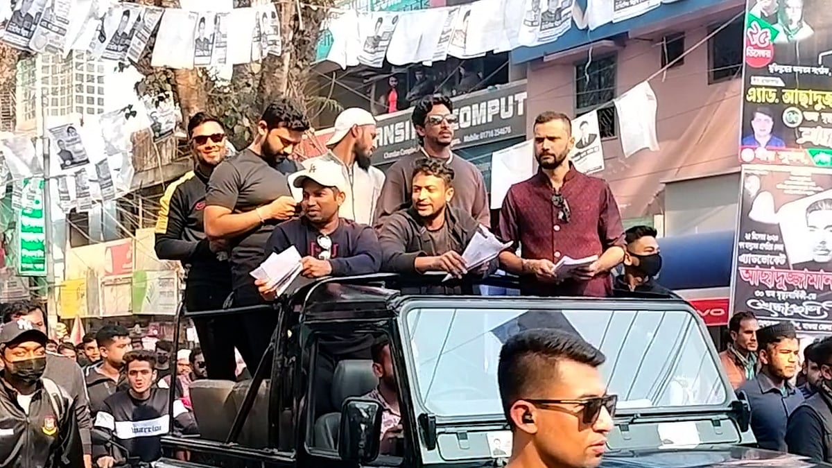 সাকিবের নির্বাচনী প্রচারণায় ছাদখোলা গাড়িতে মাশরাফি
