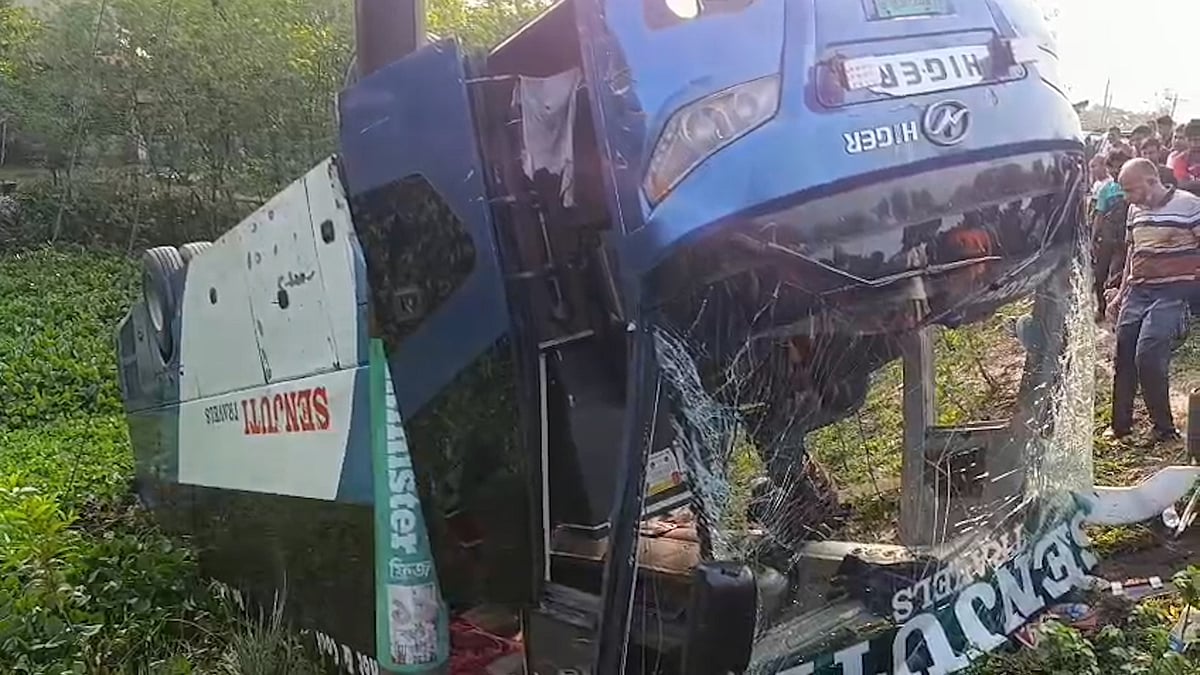 <p>ঢাকা থেকে টাঙ্গুয়ার হাওরে ভ্রমণে যাওয়ার পথে পর্যটকবাহী একটি বাস নিয়ন্ত্রণ হারিয়ে খাদে পড়ে যায় আজ শুক্রবার ভোরে। দুর্ঘটনাস্থলেই মা ও মেয়ে নিহত হন ও আহত হন অন্তত ১০ যাত্রী। বিস্তারিত দেখুন ভিডিও প্রতিবেদনে... </p>