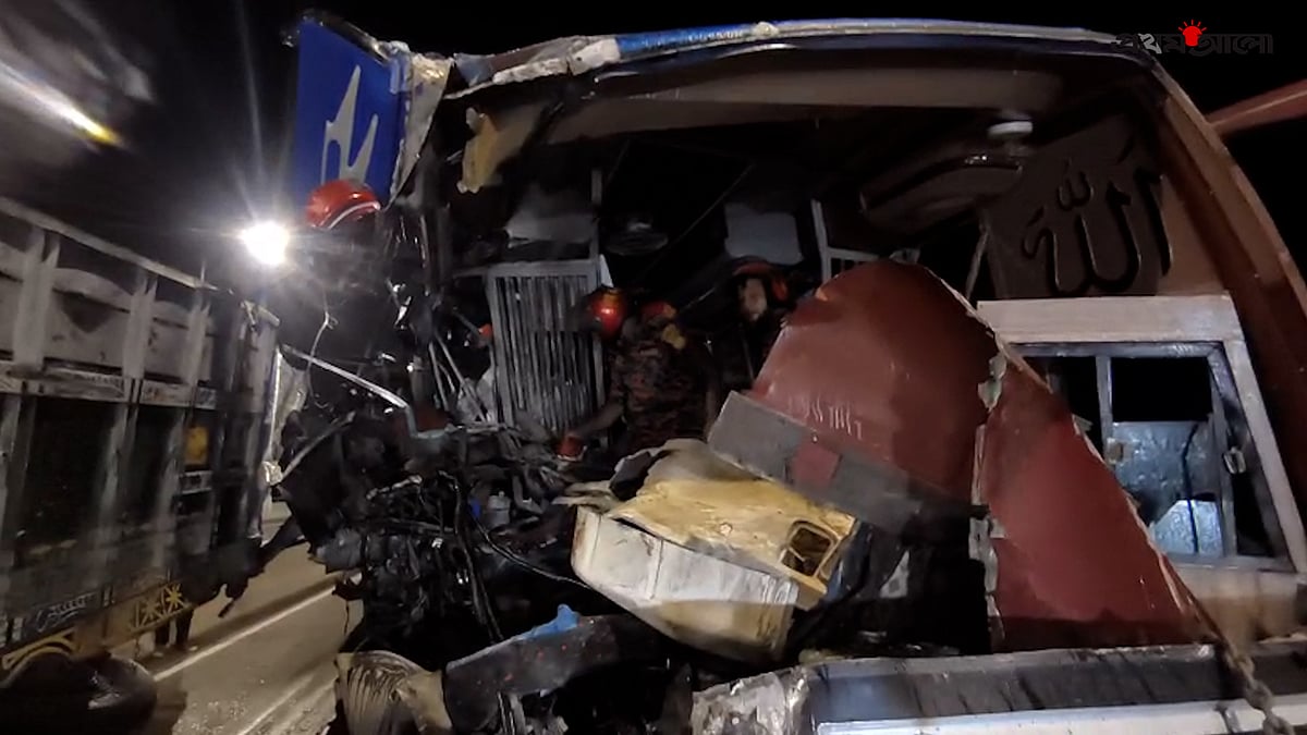 <p>মুন্সিগঞ্জের লৌহজং উপজেলার পদ্মা সেতুতে তেলবাহী ট্রাকের পেছনে বাসের ধাক্কায় দুজন নিহত হয়েছেন। বিস্তারিত দেখুন ভিডিওতে</p>