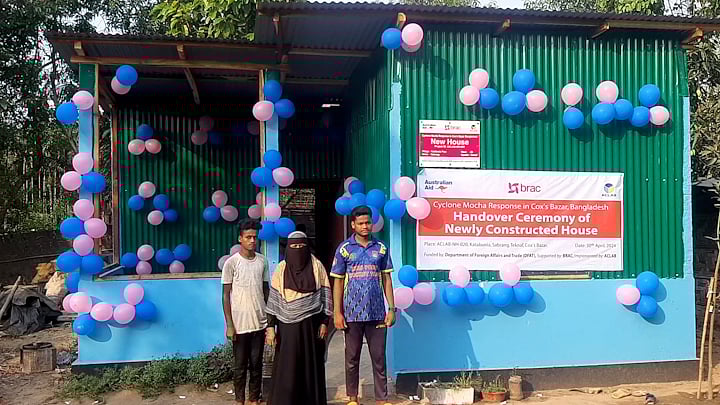 <p>কক্সবাজারের টেকনাফ উপজেলার সাবরাং ইউনিয়নে ঘূর্ণিঝড় ‘মোখায়’ ক্ষতিগ্রস্ত হতদরিদ্র পরিবার পেল নতুন ঘর..</p>