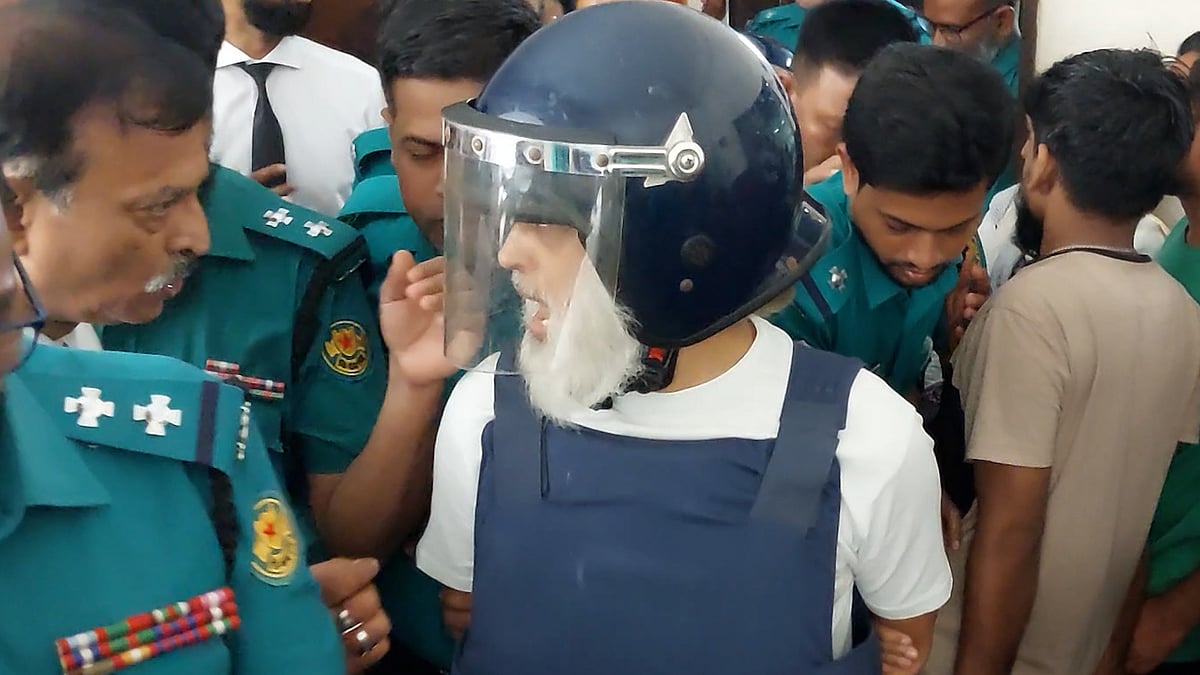 <p>হাজী সেলিম তাঁর আইনজীবী প্রাণনাথকে পত্রিকায় প্রকাশিত টেন্ডার বিজ্ঞপ্তি দিতে যাচ্ছিলেন, তখন পুলিশের এক সদস্য তাতে বাধা দেন। এতে ক্ষিপ্ত হন হাজী সেলিম। বিস্তারিত ভিডিওতে...</p>