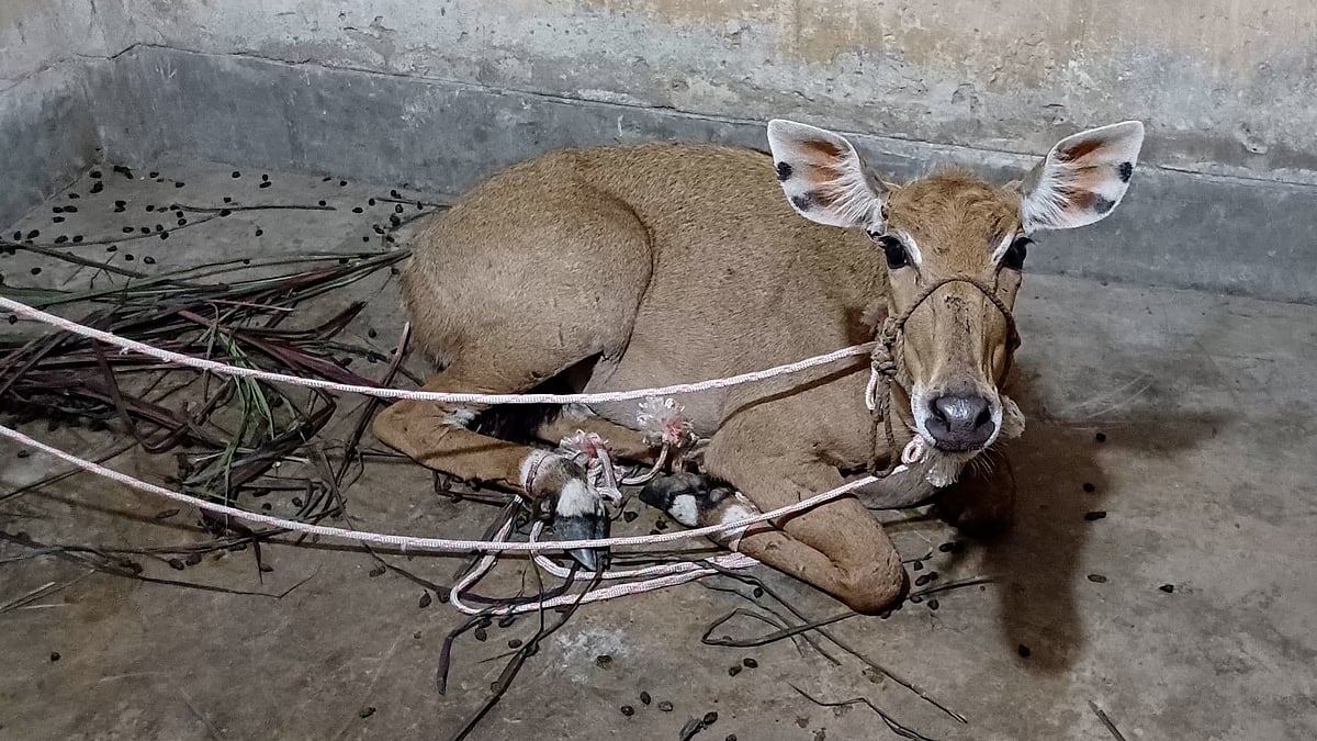 পঞ্চগড় সীমান্তে ধরা পড়েছে নীলগাই, উদ্ধারের পরেও বাঁধা আছে দড়ি দিয়ে