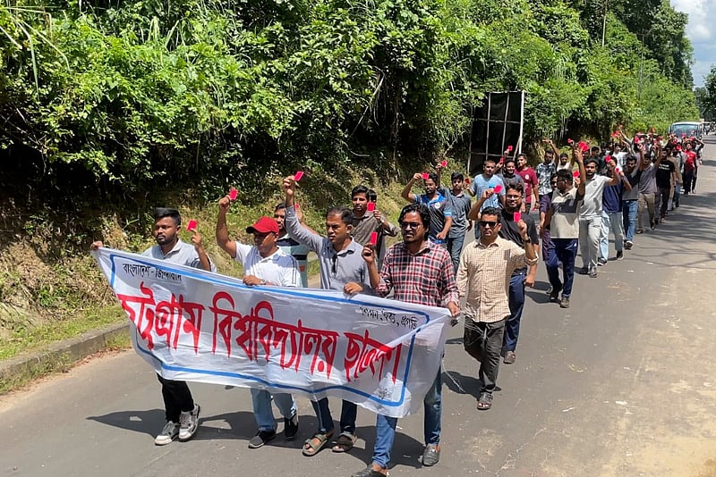 চট্টগ্রাম বিশ্ববিদ্যালয়ের প্রশাসনকে লাল কার্ড প্রদর্শন করে ছাত্রদলের মিছিল