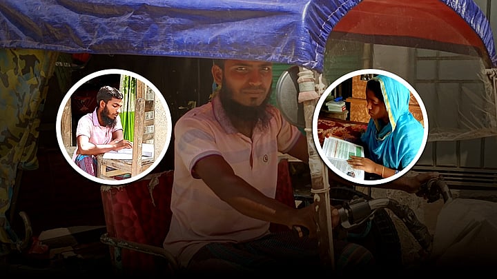 <p>অভাবের সংসার, বাবা চালাতেন ভ্যান, মারা যাওয়ার পর পরিবারের অভাব ঘোচাতে রিকশা চালাতে শুরু করেন মোস্তফা কামাল। রিকশা চালিয়ে এত অভাবের মধ্যেও চালিয়ে যাচ্ছেন নিজের পড়ালেখা, সঙ্গে চালিয়ে নিচ্ছেন স্ত্রীর পড়ালেখাও। বিস্তারিত দেখুন ভিডিও প্রতিবেদনে </p>