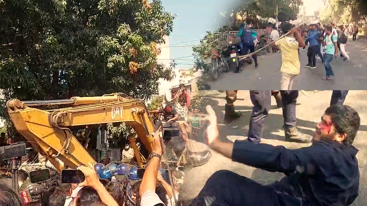 দুটি এক্সকাভেটর নিয়ে ধানমন্ডি ৩২ নম্বরে বঙ্গবন্ধু ভবন ভাঙতে যাওয়া বিক্ষোভকারী ব্যক্তিদের ওপর লাঠিপেটা ও সাউন্ড গ্রেনেড নিক্ষেপ করেছে আইনশৃঙ্খলা রক্ষাকারী বাহিনী। ১৭ নভেম্বর দুপুরে এ ঘটনা ঘটে। বিস্তারিত দেখুন ভিডিও প্রতিবেদনে।