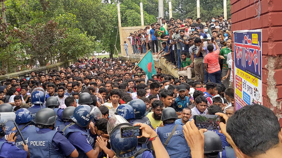 <p>কোটা সংস্কার আন্দোলনকে কেন্দ্র করে সংঘর্ষ, ছাত্র-শিক্ষকদের গ্রেপ্তার, হয়রানি ও নিপীড়নের প্রতিবাদে কুড়িগ্রামে আয়োজিত শিক্ষার্থীদের বিক্ষোভ মিছিলে বাধা দিয়েছে পুলিশ। বিস্তারিত ভিডিওতে…</p>