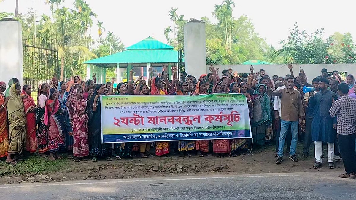 প্রভিডেন্ট ফান্ডের বকেয়া টাকার দাবিতে শ্রীমঙ্গলে চা–শ্রমিকদের প্রতিবাদ