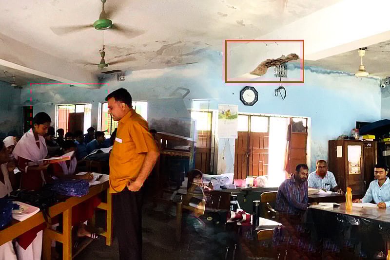 নড়াইলের লোহাগড়ার বড়িদয়া বহুমুখী উচ্চবিদ্যালয়ের ভবনটি এখন মারাত্মক ঝুঁকিপূর্ণ। পলেস্তারা খসে পড়া, রড বেরিয়ে থাকা আর সামান্য বৃষ্টিতেই ছাদ চুইয়ে পড়া পানি—সব মিলিয়ে এখানে প্রতিদিন ৬ শতাধিক শিক্ষার্থী ও ২৫ জন শিক্ষক-কর্মচারীর জীবন ঝুঁকির মধ্যে রয়েছে। বিস্তারিত দেখুন ভিডিওতে