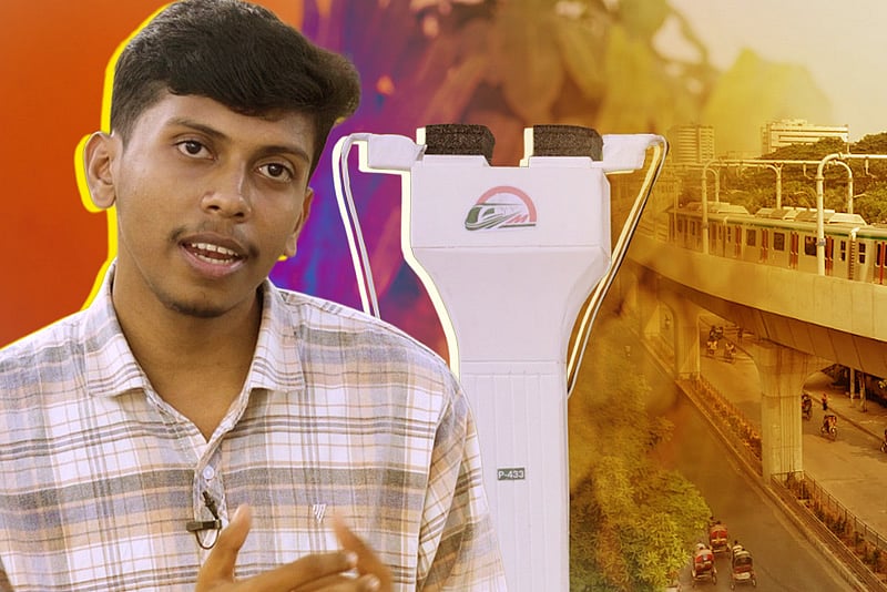 রাজধানীর ফার্মগেট এলাকায় মেট্রোরেলের বিয়ারিং প্যাড নিচে পড়ে পথচারীর মৃত্যুর পর নিরাপত্তা নিয়ে মানুষের উদ্বেগ বেড়েছে। এমন সময় মেট্রোরেল কাঠামোর ঝুঁকি আগেভাগেই শনাক্ত করতে একটি নতুন প্রযুক্তি উদ্ভাবন করেছেন ইরান সরদার। তিনি ড্যাফোডিল ইন্টারন্যাশনাল ইউনিভার্সিটির শিক্ষার্থী। বিস্তারিত দেখুন ভিডিওতে—