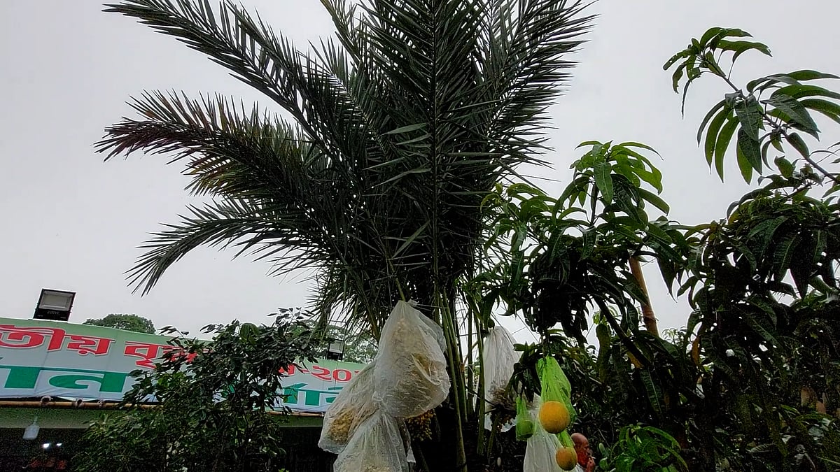 রাজধানীর আগারগাঁওয়ে শুরু হওয়া এ বছরের জাতীয় বৃক্ষমেলায় আলোচিত একটি খেজুরগাছ। বিক্রেতার দাবি, বংশমর্যাদাপূর্ণ খেজুরগাছটি সৌদি আরবের ‘আল বারহি’ জাতের। ৭ বছর বয়সী এ খেজুরগাছের দাম ১০ লাখ টাকা প্রথমে চাওয়া হলেও এখন পর্যন্ত ৫ লাখ টাকা এর দাম উঠেছে। বিস্তারিত দেখুন ভিডিওতে