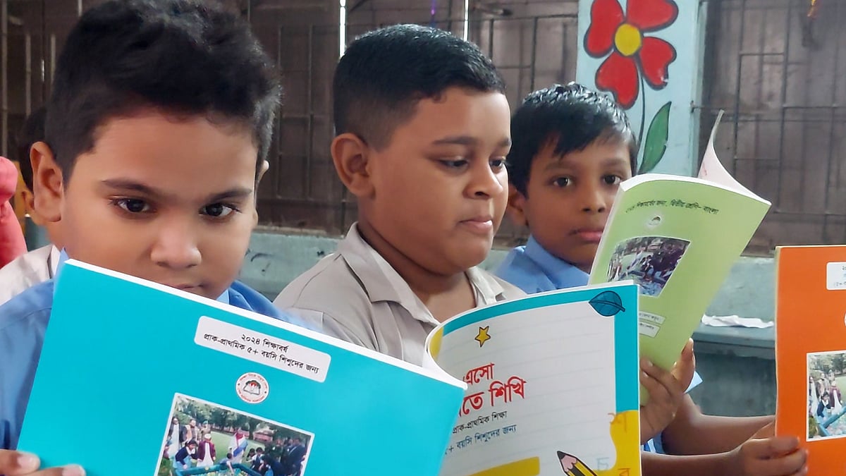 নতুন বই হাতে পেয়ে শিশুদের আনন্দ