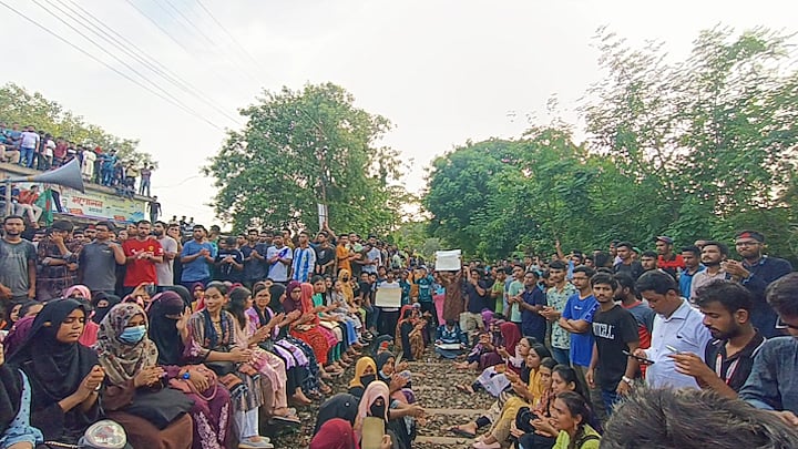 <p>সরকারি চাকরিতে সব গ্রেডে কোটাপদ্ধতি সংস্কারের এক দাবিতে রাজশাহীতে শুক্রবারও রেললাইন অবরোধ করে বিক্ষোভ করেছেন শিক্ষার্থীরা। বিস্তারিত দেখুন ভিডিওতে…</p>