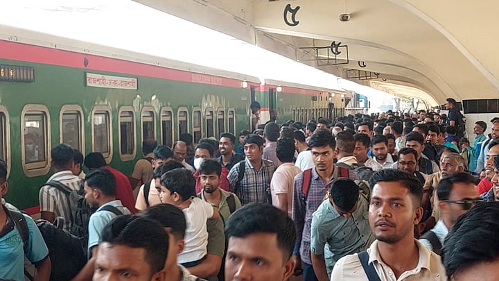 ঈদ যত ঘনিয়ে আসছে রেলস্টেশনে মানুষের চাপ তত বাড়ছে। পরিবার ও স্বজনদের সঙ্গে ঈদের আনন্দ ভাগাভাগি করে নিতে অনেকেই নিজ নিজ গন্তব্যে রওনা দিচ্ছেন। বিস্তারিত দেখুন ভিডিওতে