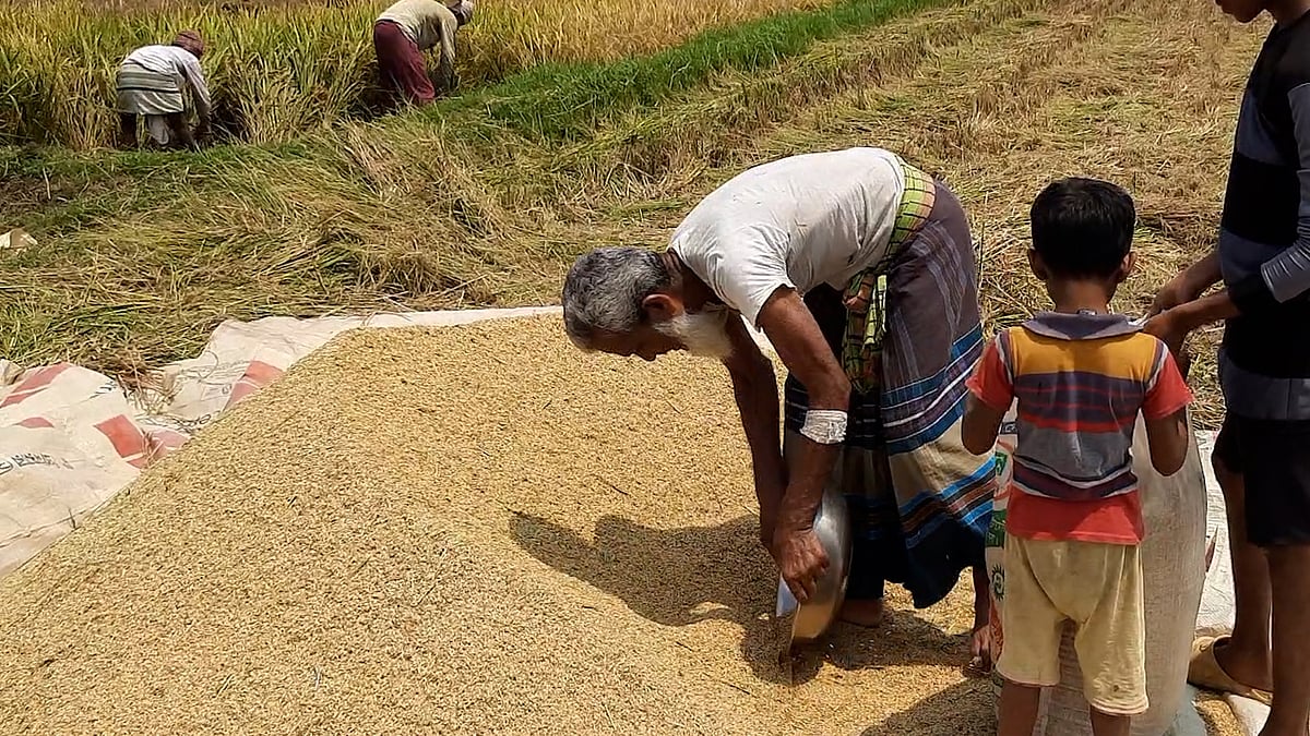 <p>দাউদকান্দির উপজেলার প্রতিটি গ্রামে চলছে ধান কাটা, মাড়াই, ঝাড়াইসহ নানা কর্মযজ্ঞ। ভালো ফলনে খুশি কৃষক</p>