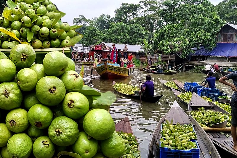 ঝালকাঠির ভীমরুলির ভাসমান হাটে নৌকার ওপরেই হয় পেয়ারা, আমড়া, লেবু ও নানা ফলের বেচাকেনা। বর্ষাকালে দেশের নানা প্রান্ত থেকে ব্যবসায়ী ও পর্যটকেরা আসেন এই খালপাড়ের হাট দেখতে। প্রায় ২০০ বছরের ঐতিহ্য বহন করছে স্বরূপকাঠির এই পেয়ারার হাট। বিস্তারিত দেখুন ভিডিও প্রতিবেদনে