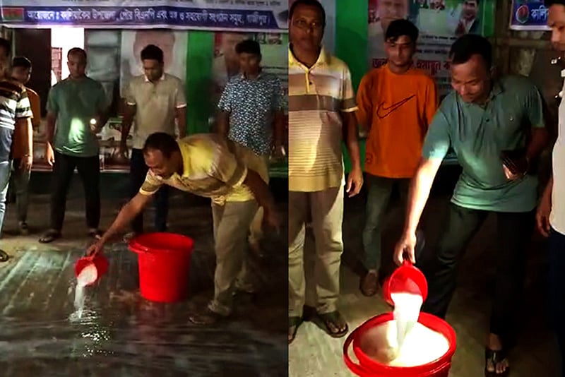 বিএনপির একটি পক্ষ দলীয় কার্যালয়ে আওয়ামী লীগের সাবেক নেতা–কর্মীদের নিয়ে এসেছে। গাজীপুরের কালিয়াকৈরে ঘটে যাওয়া এমন ঘটনায় ক্ষোভ জানিয়ে ছাত্রদলের নেতা–কর্মীরা এক মণ দুধ দিয়ে ধুয়ে দেন উপজেলা বিএনপির কার্যালয়। ৬ আগস্ট ২০২৫ ঘটনাটি ঘটে। বিস্তারিত দেখুন প্রতিবেদনে...