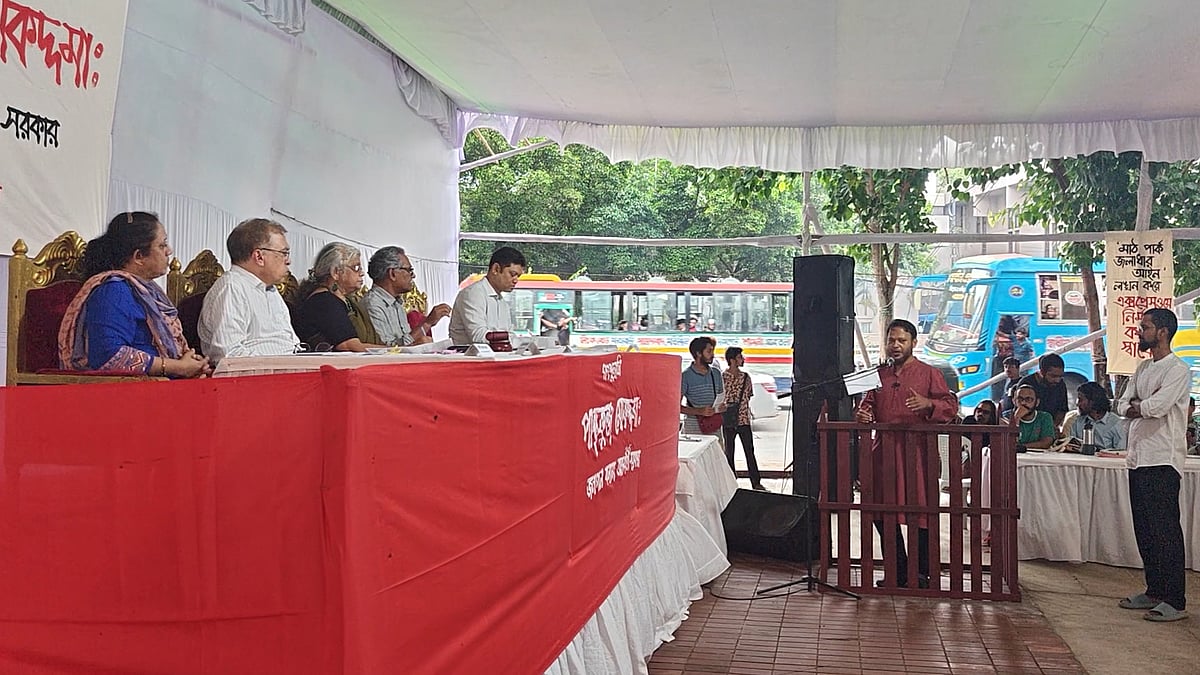 বাংলাদেশ গাছ রক্ষা আন্দোলনের উদ্যোগে অনুষ্ঠিত হলো ‘পান্থকুঞ্জ মোকদ্দমা: জনগণ বনাম অন্তর্বর্তী সরকার’ শীর্ষক গণশুনানি। ৩০ মে শুক্রবার বিকেলে পান্থকুঞ্জ উদ্যানের সার্ক ফোয়ারা গেটে এটির আয়োজন করা হয়। স্থানীয় মানুষ ও পরিবেশকর্মীদের অংশগ্রহণে এখানে বিশেষজ্ঞরাও উপস্থিত ছিলেন। বিস্তারিত দেখুন ভিডিও প্রতিবেদনে…